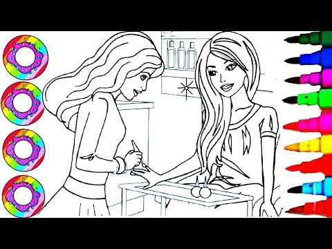 Colouring Drawings Disney’s Barbie and Friend at the Nail Art Saloon Coloring Pages